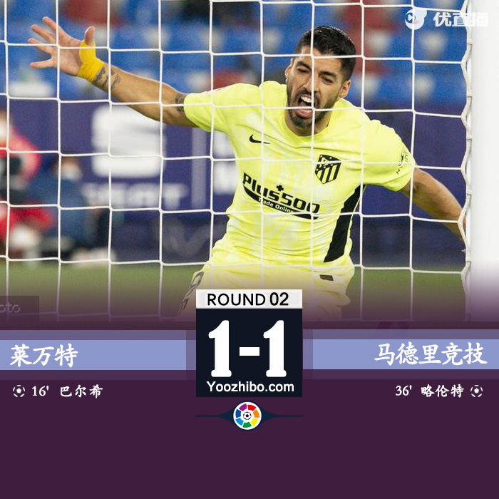 jrs直播网2月18日讯 北京时间2月18日02:00,西甲第2轮进行一场补赛,马德里竞技客场挑战莱万特。上半场,巴尔迪帮助莱万特取得领先,略伦特远射将比分扳平。下半场,科雷亚补射空门不进。最终,马德里竞技1-1客场憾平莱万特,11轮不败,少赛一场6分优势继续领跑积分榜。