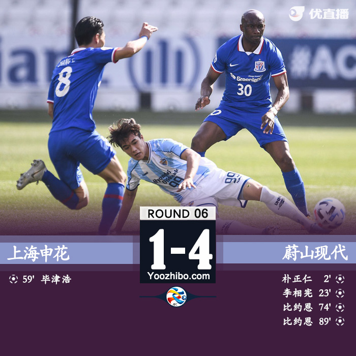 jrs直播网讯:北京时间12月3日晚18点,2020赛季亚冠F组小组赛展开末轮较量,上海申花对阵K联赛劲旅蔚山现代。上半场,申花连丢两球,彭欣力远射偏出;下半场,申花加强攻势,莫雷诺助攻毕津浩扳回一球,李帅送点,约翰森连入两球。最终,上海申花1-4不敌蔚山现代,位列小组第三无缘出线,蔚山现代和东京FC晋级。