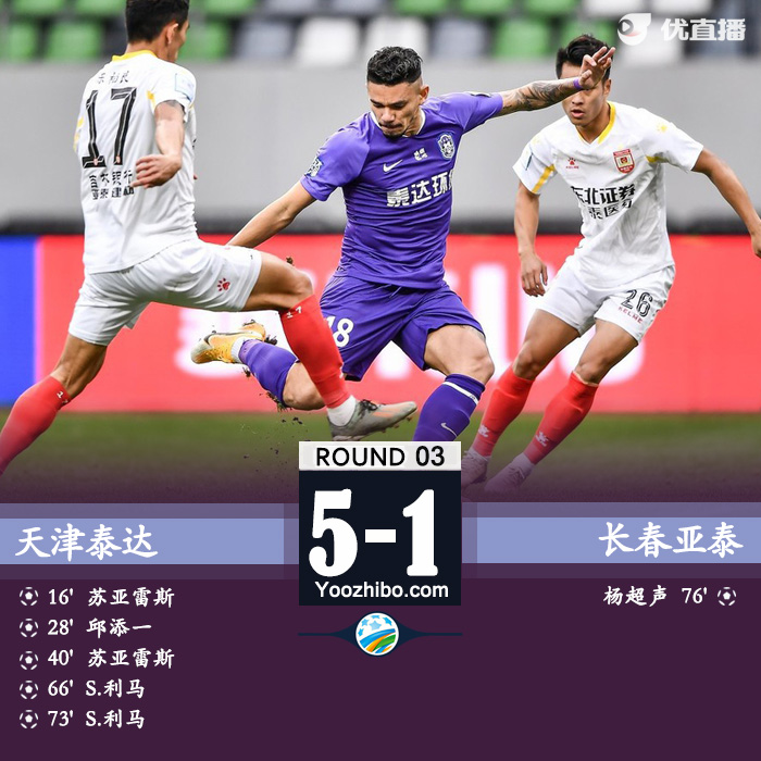 jrs直播网讯:北京时间12月1日15:00,足协杯展开第三轮较量,天津泰达迎战长春亚泰。苏亚雷斯打破僵局,第27分钟,邱添一头球破门得分,随后苏亚雷斯完成梅开二度,泰达3-0领先亚泰。