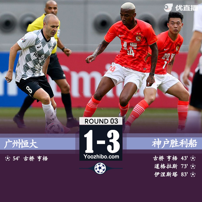 jrs直播网讯:北京时间11月25日晚,亚冠小组赛G组赛事继续进行,广州恒大1-3负于神户胜利船,恒大2战仅拿到1分。开场不久张琳芃因伤退赛;第44分钟,伊涅斯塔送出助攻,古桥亨梧包抄破门;第55分钟,神户乌龙球助恒大扳平;第74分钟,替补登场的道格拉斯助神户再度超出;第82分钟,艾克森破门被误判为越位;1分钟后伊涅斯塔入球为神户锁定胜局。