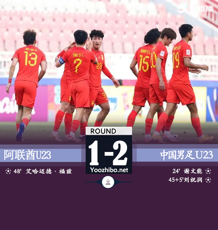jrs直播网讯:北京时间4月22日晚间21:00,U23亚洲杯小组赛第三轮,中国国奥对阵阿联酋国奥,本场比赛主裁判为黎巴嫩人侯赛因-叶海亚。上半场,贾非凡乌龙球被吹,谢文能抽射打入本届赛事国奥首球,拜合拉木造点,但被VAR取消,刘祝润利用对方门将失误,扩大比分。下半场,法齐利用国奥防线松懈,扳回一城,曼苏里屡造险,李昊贡献精彩扑救。最终,中国国奥2-1阿联酋国奥,。