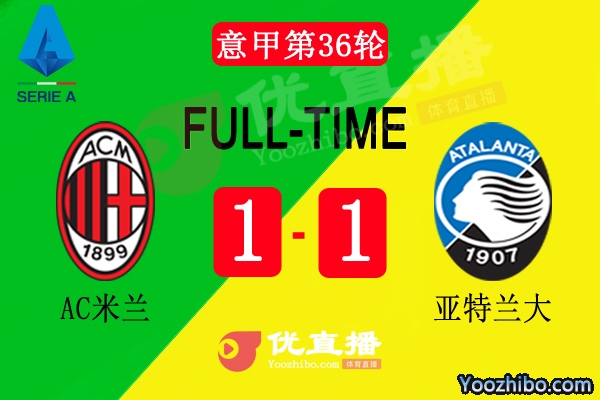 最终全场比赛结束,米兰在主场以1-1的比分战平亚特兰大,复赛后继续保持不败。