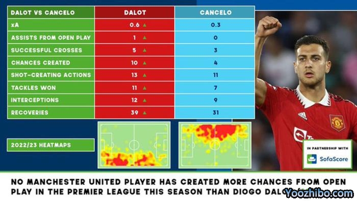 曼联和曼联的打法不同,直接对比不算公平,并不能说明达洛已经比坎塞洛更强,但足以证明曼联右边卫本赛季发挥不俗。