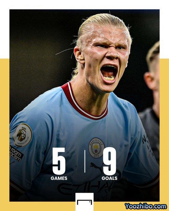 目前他也以5轮9球的数据领跑英超射手榜,领先第二名的米特洛维奇4球。