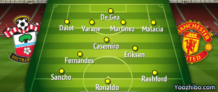 《曼彻斯特晚报》预测曼联首发:德赫亚/迪奥古·达洛,瓦拉内,利桑德罗·马丁内斯,泰雷尔·马拉西亚/卡塞米罗,埃里克森,布鲁诺·费尔南德斯/桑乔,C罗,拉什福德。