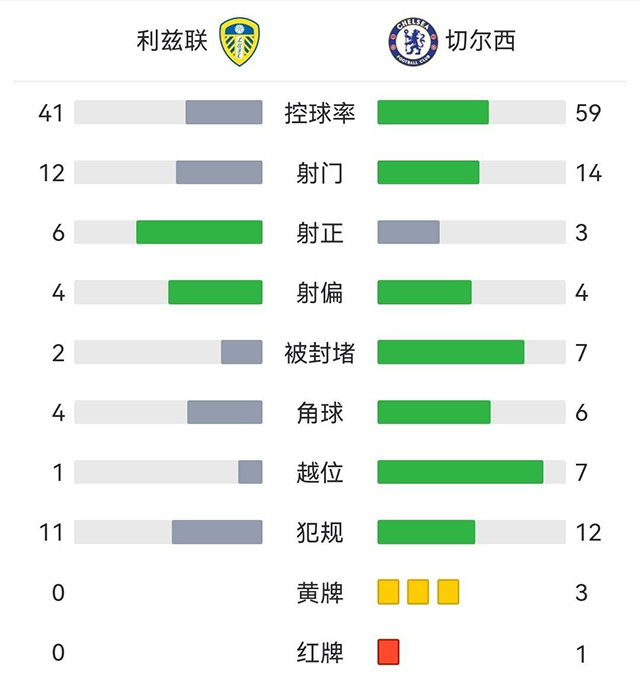 全场比赛结束,切尔西0-3不敌利兹联。