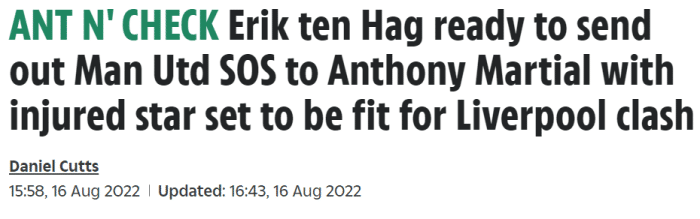 马夏尔已成曼联全村的希望!已伤愈可出战利物浦,滕哈格盼其救命
