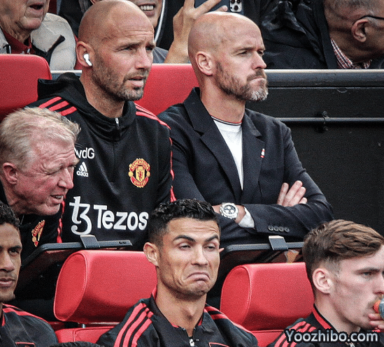 C罗上场之后曼联在前场的变化还是很明显的,他也非常积极努力,但无奈球队吃到了败仗。比赛结束之后,C罗在场边撇嘴的一幕火了,这是场边的滕哈赫在紧张的关注比赛,同样在替补席的C罗做出了撇嘴的动作,堪称是表情包。