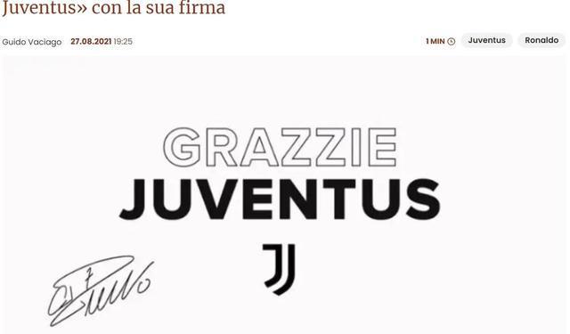 不过C罗只是在告别短视频中简单地用意大利语写下:“谢谢,尤文图斯”,然后附上了自己的签名。