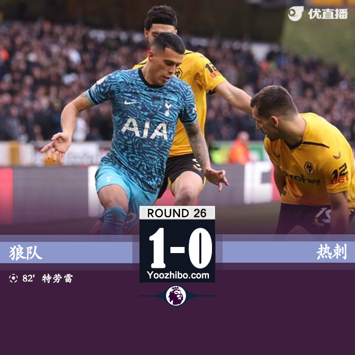 jrs直播网讯 北京时间3月4日23:00,2022-23赛季英超联赛第26轮,热刺客场挑战狼队。上半场迭戈-科斯塔伤退,波罗任意球中框,两队暂0-0战平;下半场孙兴慜射中横梁,特劳雷补射破门,热刺0-1狼队,结束英超2连胜,仍然排在第四位。