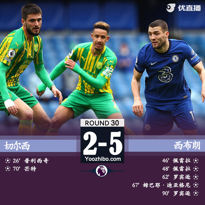 jrs直播网4月3日讯 北京时间4月3日晚19:30,英超第30轮比赛打响,切尔西坐镇斯坦福球场迎战西布朗。上半场,普利西奇首开记录,蒂亚戈-席尔瓦两黄变一红被罚下,半场结束前佩雷拉梅开二度反超比分;下半场,罗宾逊梅开二度、迪亚涅破门,芒特扳回一城。最终,十人切尔西主场2-5爆冷惨败西布朗。多赛一场的情况下积51分排在第4,仅领先身后的西汉姆2分。
