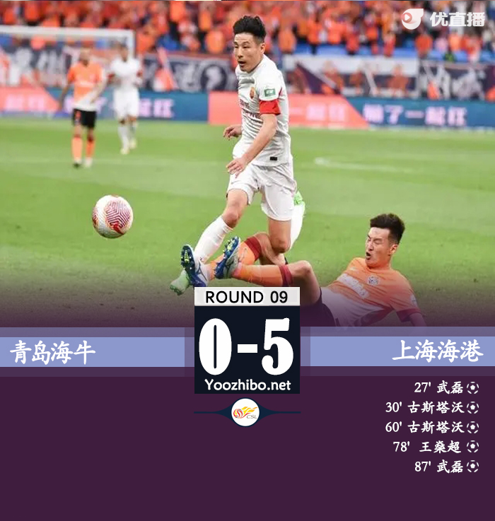 jrs直播网讯:北京时间5月1日晚上18:00,中超第9轮,青岛海牛主场迎战上海海港。上半场,巴尔加斯妙传助攻武磊单刀破门,武磊助攻古斯塔沃再下一城,古斯塔沃、奥斯卡先后进球被吹。下半场,奥斯卡助攻古斯塔沃头槌得手,王燊超抽射破门,武磊笑纳单刀。全场结束,青岛海牛0-5上海海港。本场过后,上海海港5胜3平积18分暂居第2,青岛海牛2胜1平6负积7分排名倒数第2。