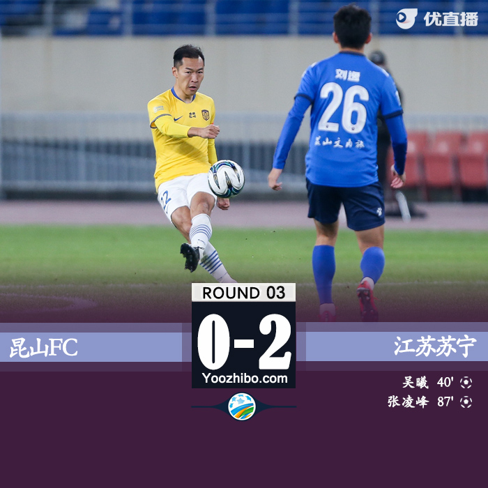 主裁贾志亮哨响!第7分钟,禁区右下苏宁斜塞,冯伯元劲射击中边网。第8分钟,外围中路田依浓远射攻门,未能压住打高了。第10分钟,禁区内左侧黄紫昌疑似遭昆山球员推倒,主裁没表示。第16分钟,左路昆山下底传中,门前两点均未打上。第24分钟,意外!奥拉罗尤被迫换人,吉翔疑似拉伤,张诚替补登场。第38分钟,实时打门比,昆山1-4苏宁。第40分钟黄紫昌前场断球,随后右路带球展开突破输送传中球,紧接着吴曦迎球大力抽射,将皮球轰入对手球门,苏宁取得1-0领先。